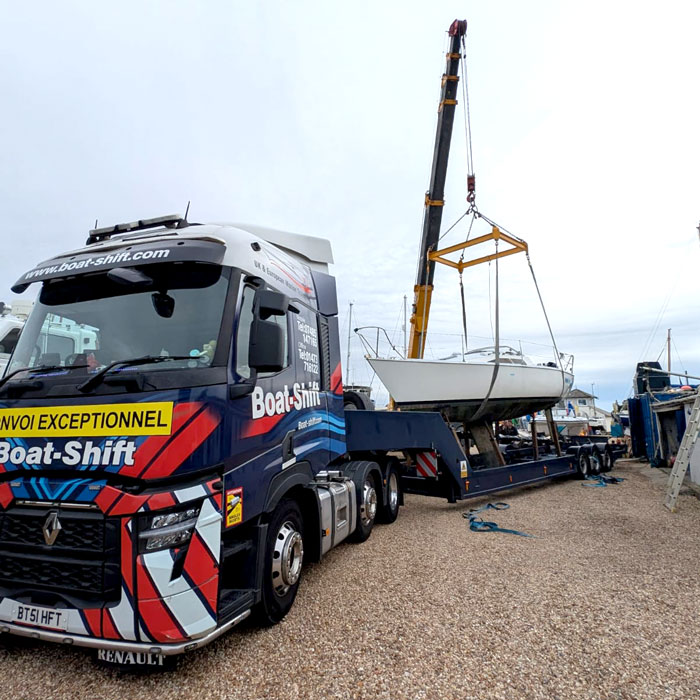At Boat-Shift, we are a dedicated boat transport company located near Dover in Kent. With a versatile fleet of specialist trailers, we expertly transport yachts, motor cruisers, and workboats throughout the UK and across Europe. Our proximity to the Channel port of Dover makes us ideally positioned for overland transport to and from France, Spain, and other European destinations.