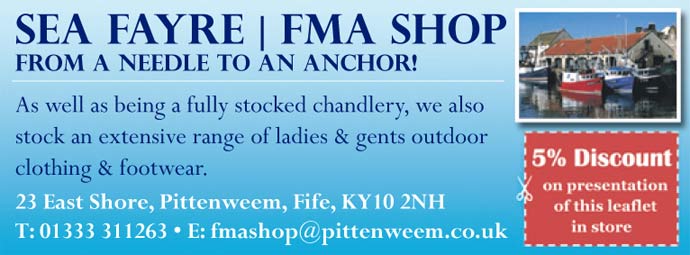 The Fishermen’s Mutual Association (Pittenweem) Ltd was formed in 1948 when a group of local fishermen got together and decided to form a Co-operative. The idea being that they united and sold their daily catch as a group instead of individuals. Now there are boats catching langoustine, lobsters, crabs, scallops. All of which are available to the general public for collection at Pittenweem. Prices are available on request.
